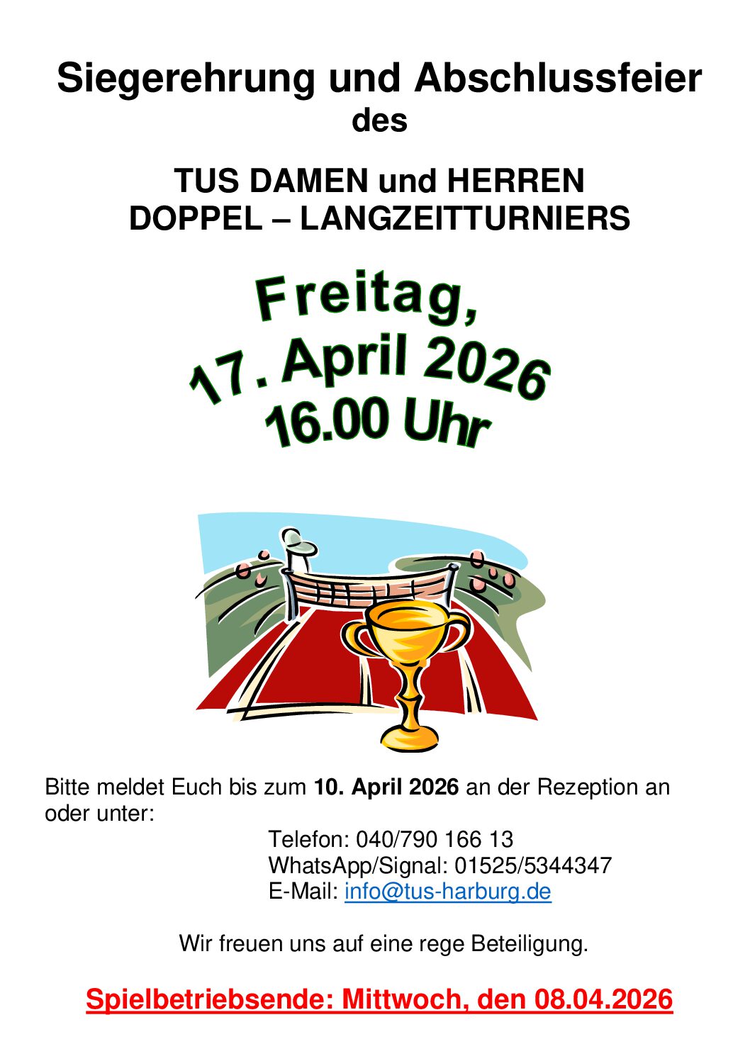wir wünschen Euch viel Spaß bei unserem diesjährigen Doppel-Langzeit-Turnier.